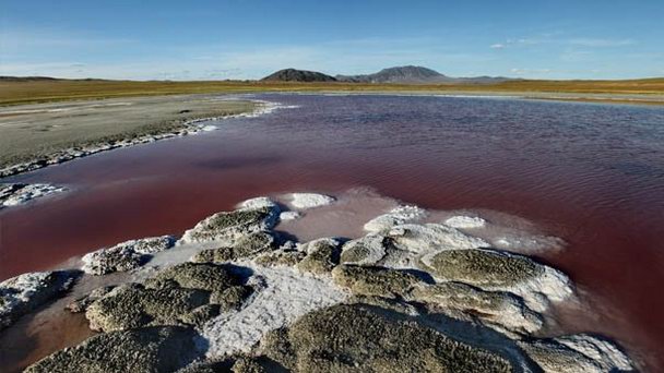 По размерам озеро небольшое. Длина его 1,4 километра, а ширина от 200 до 400 метров. Средние глубины озера всего 0,02 метра. Вокруг озера абсолютно голая местность, без всякой растительности, все полностью выжжено солнцем.