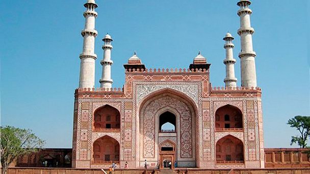 Мавзолей «Акбара» (Агра) — это целый мемориальный комплекс великого и почитаемого мусульманского правителя Индии Акбара Великого, расположенный на территории большого парка. Сам парк окружен со всех сторон высокой стеной с четырьмя воротами. Однако попасть в парк можно через одни лишь южные ворота из красного песчаника. Эти ворота называют еще воротами «Великолепия». Это основная достопримечательность священного комплекса, настоящий шедевр архитектуры, украшенный разноцветной плиткой с растительным и географическим орнаментом с арабской вязью.