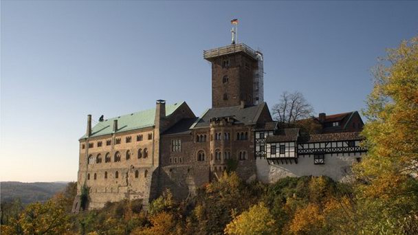 Замок Вартбург, выстроенный на высокой скале неподалеку от немецкого города Айзенах – прекрасный средневековый замок, некогда принадлежащий знатному роду Людовингов. Замок был построен в 1067 году и впоследствии неоднократно перестраивался и реконструировался. В результате сформировался прекрасный архитектурный ансамбль, сочетающий в себе элементы романского стиля и готики, ренессанса и историзма.