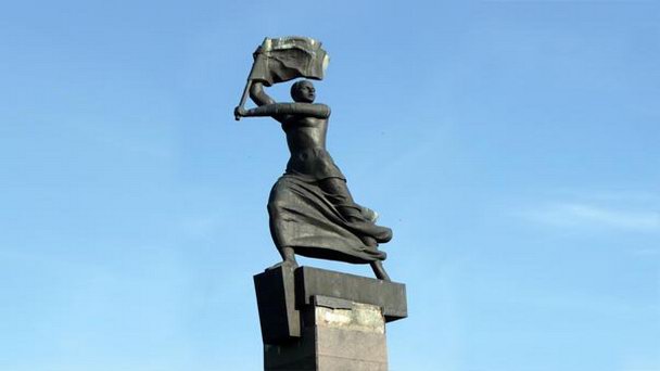 Изначально памятник являл собой двухчастную композицию - собственно вертикальный монумент со скульптурой и горизонтальный рельеф со сценами революционных событий. До нашего времени дошла лишь часть композиции - скульптура женщины на высоком постаменте. Но даже в таком усечённом варианте памятник вызывает интерес и гармонично вписывается в окружающую среду. Фигура женщины с развевающимся флагом в руках устремлена прочь от храма, рядом с ней - обрыв и простирающийся русский пейзаж.