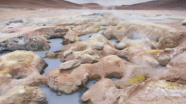 Долина гейзеров Соль де Маньяна, что в переводе с испанского языка означает "Утреннее солнце", расположена в Национальном заповеднике фауны Территория долины, на которой множество грязевых и водных гейзеров и фумарол, достигает 10 кв.км. Анд имени Эдуардо Абароа в провинции Потоси на высоте 4850 метров. Эта область характеризуется активной вулканической деятельностью. Фумаро'лы - это трещины и отверстия на склонах или у подножия вулканов, через которые горячие газы вырываются наружу.