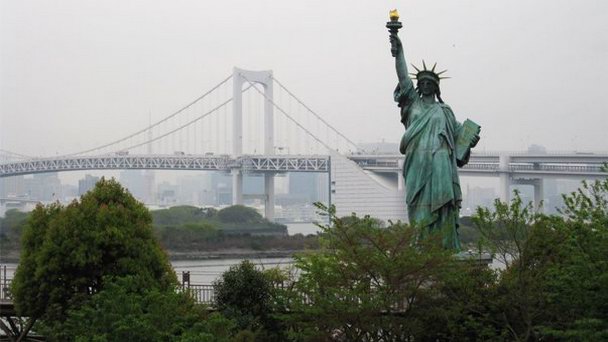 Рукотворный остров Одайба стал воплощением японской мечты о будущем. В этом будущем нашлось место для уменьшенной копии Статуи Свободы. Её установили в 1998 году на средства компаний, чьи офисы возвышаются над Токийским заливом и Радужным мостом.