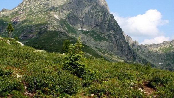 Пожалуй, самая знаменитая вершина хребта Ергаки. Она возвышается над озером Светлым и притягивает к себе туристов. Очертания скалы Пик Птица сильно напоминают фигуру огромной птицы. Не надо даже приглядываться, чтобы увидеть орлицу, раскрывшую свои крылья.