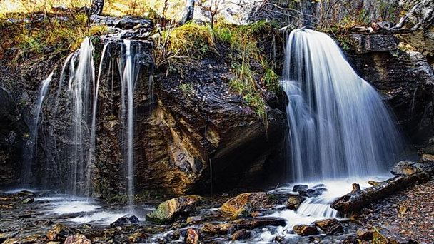 Сам водопад небольшой – всего примерно 3.5 метра. От горного выступа река падает с двух сторон, образуя два водопада. Рядом с водопадом находится смотровая площадка, с которой удобней всего наблюдать за прекрасным видом на Катунскую долину.