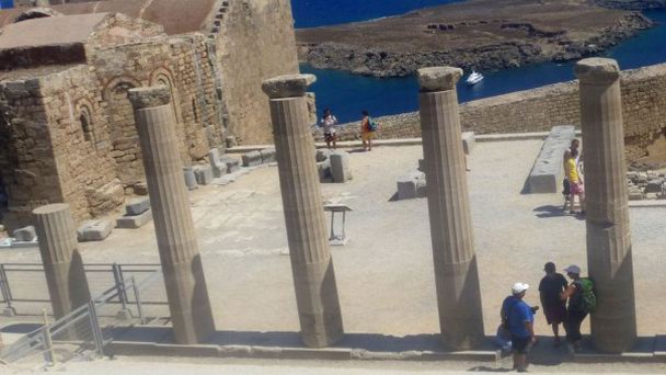 Проходя Портик, посетитель Акрополя попадает к его воротам – Пропилеям Акрополя Линдоса. Ширина Пропилей – 21 метр, число ступенек – 34. Пропилеи Линдоса были построены в конце 4 века до н.э. с целью отделить теменос святилища от прочей территории посредством монументального сооружения. В настоящие время от Пропилей не сохранилось почти ничего, за исключением контуров основания в форме буквы П.