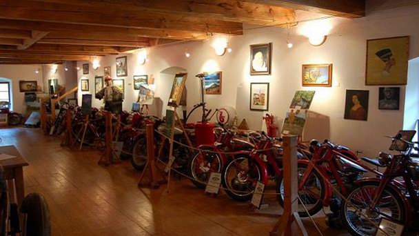 В настоящее время здесь представлено более 20 мотоциклов различных чешских и иностранных брендов, в том числе Ява, CZ, BMW и Harley Davidson. Кроме того, в музее размещены и другие экспонаты, например, антикварная мебель, часы, старинные украшения и картины чешских художников.