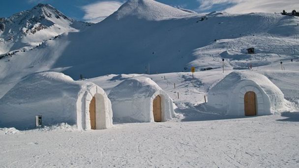 При желании можно расположиться на ледяных лавках с такими же ледяными столиками на мягких натуральных шкурах. А переночевать можно в ледяных иглу, которые, правда, как правило забронированы на много дней вперед.