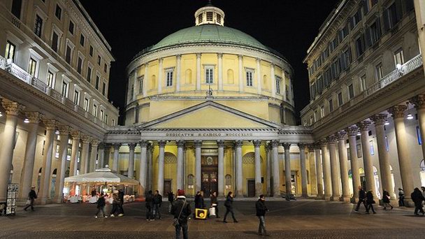 Собор построен на территории древней церкви святой Марии, существовавшей на этом месте еще в 1317 году. 36 монолитных гранитных колонн ограничивают площадь перед центральным входом в храм, цилиндрическая центральная часть которого увенчана громадным куполом высотой 36,9 метров, разработанным архитектором Феличе Пицагали. В целом архитектурное решение напоминает пантеоны в Риме и Париже. Малый купол над алтарем расписан фресками, символизирующими "Апофеоз Святого", художник Анджело Инганни, 1864 год.