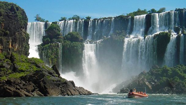 Каскад Игуасу, разделенный на отдельные потоки островками, стремится вниз на такой скорости, что захватывает дух. По деревянным мостикам, которые паутиной опутывают островки, можно совершить пешую экскурсию. Конечно, предварительно стоит запастись непромокаемыми дождевиками. Не хотите идти пешком – к вашим услугам вертолеты и лодки. Что бы вы ни выбрали, острые ощущения гарантированы!