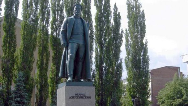 Открытие памятника Дзержинскому состоялось 1987 году, в год празднования 70-й годовщины Октябрьской революции. Создателем скульптуры стал ленинградский художник А.С. Чаркин. Монумент отлит из бронзы на ленинградском предприятии. Дзержинский изображен в полный рост, стоящим на трехметровом гранитном постаменте. Живописность добавляют пирамидальные тополя, которые были высажены позади памятника одновременно с его установкой.