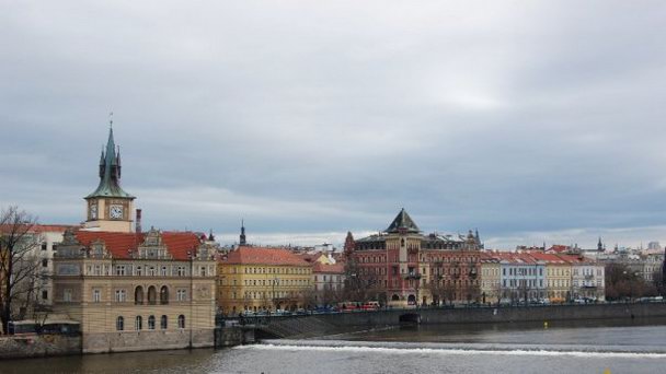 Новотный пешеходный мостик - это правый берег реки Влтавы, на котором расположена Староместская водонапорная башня.
