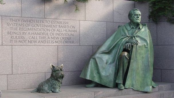 Мемориал Франклина Делано Рузвельта – это одна из главных архитектурных достопримечательностей Вашингтона, торжественно открытая 2 мая 1997 года. Он был выполнен известным архитектором Лоуренсом Халприном и представляет собой огромный блестящий камень прямоугольной формы, его длина составляет 2,4 м, а высота – 1,6 м. На памятнике высечены инициалы великого политического деятеля, а также годы его жизни.