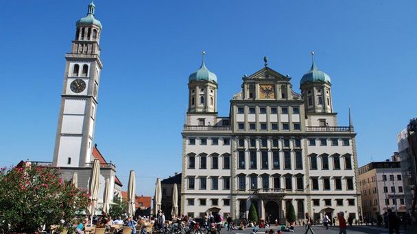Ратуша и башня Перлахтурм, расположенные в немецком городе Аугсбург, представляют собой единый исторический памятник.