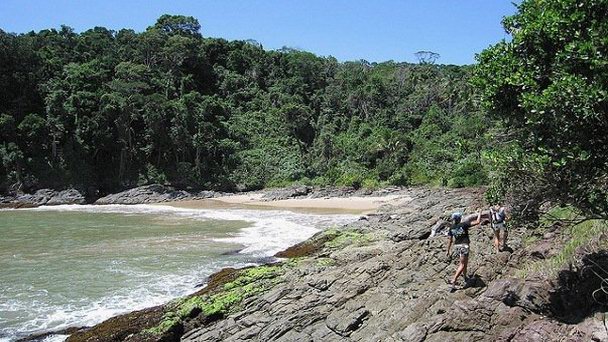 Пляж преимущественно скалистый, на нем мало песка, а растительность настолько буйная и густая, что идти порой очень трудно. Неспокойные воды океана все время разбиваются о большие валуны, лежащие на пляже.