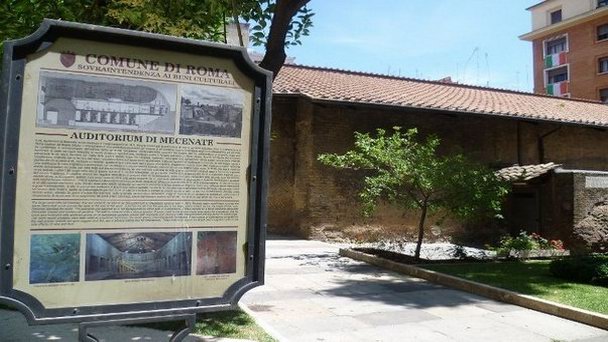 В Риме, на улице Мерулана, есть необычное одноэтажное здание, построенное много веков назад. Вывеска этого здания гласит, что здесь находится Аудитория Мецената. Когда-то это здание действительно принадлежало Меценату.