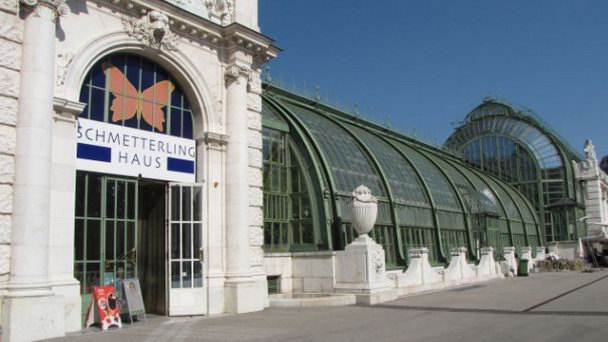 Здание полностью стеклянное. Внутри порхают бабочки. Они не пугливы и могут сесть вам на руку. Бабочки обитают в искусственном влажном климате, максимально приближенном к естественным тропикам. Здесь влажность воздуха достигает 80 процентов, а постоянная температура 28 градусов. Изначально в здании был Пальмовый павильон, созданный в 1901 году. Дом бабочек, или Парк бабочек тут открылся в 1994 году. Заведение рассчитано на туристов, которым интересна живая природа. Самым ценным экземпляром здесь считается павлиноглазка, с размахом крыльев до 30 см.