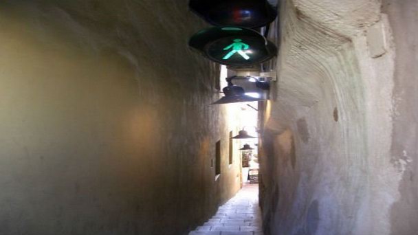 Самая узкая улица Праги. Ее ширина не превышает 70 сантиметров и двум прохожим здесь уже не разойтись (отсюда и название - поместиться в проходе может только один человек). Поэтому по обеим сторонам улица снабжена светофорами с кнопкой. Когда с одной стороны на улицу заходит человек, он нажимает кнопку, и на другой стороне светофор загорается красным.