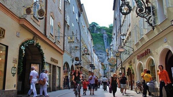 Самое интересное здесь - это вывески, пестреющие на каждом доме. Говорят, среди них есть и позолоченные. От Гетрайдегассе отходят не менее интересные Гольдгассе ("Золотой переулок") и Юденгассе ("Еврейский переулок"). Недалеко располагается Зальцбургский кафедральный собор. Напротив него - дом, в котором жил Моцарт, а рядом - Зальцбургский музей. И над всей этой красотой возвышается крепость Хоэнзальцбург.