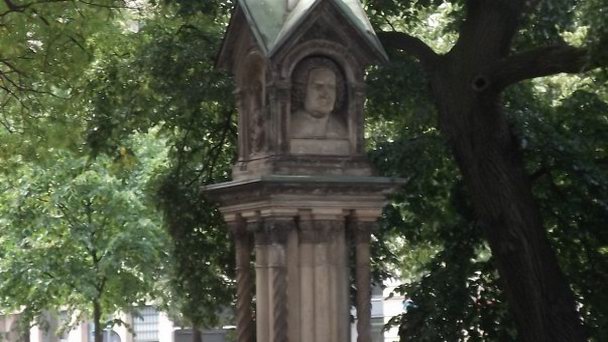 Это первый в мире и старейший памятник Баху, дар композитора и капельмейстера лейпцигского Гевандхауса Феликса Мендельсона Бартольди (1809-1847).