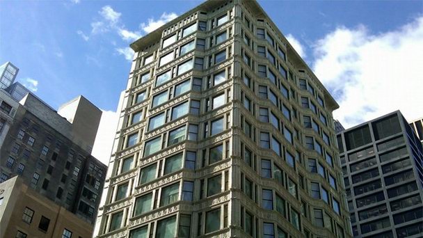 Фасад здания не отягощен деталями, он выглядит легким за счет большого количества окон и светлой терракотовой облицовки. Вестибюль, двери лифта и лестница украшены художественным литьем. Стены отделаны английским алебастром и красным деревом. Мозаичные мраморные полы создают эффект коврового покрытия.