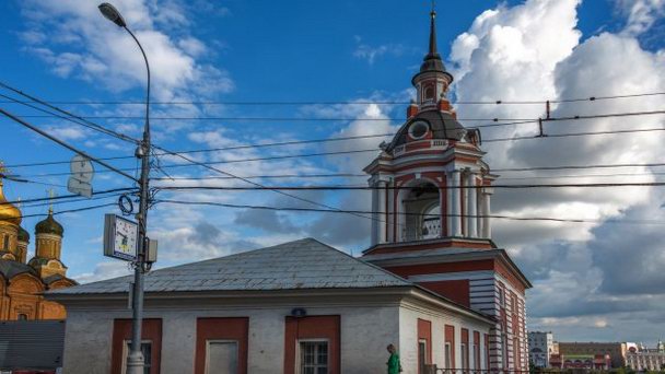 Колокольня была возведена в 1784-89 гг. на основании бывшей здесь церкви Иакова 1756 г. Нижняя часть колокольни с двумя большими арочными проемами служила парадным входом на территорию монастыря. Примыкающий к ней корпус келий построен также в конце XVIII в.