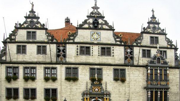 Знаменитая Старая Ратуша в Ханн. Мюндене - основная достопримечательность города. Это выдающийся памятник архитектуры в стиле Везерский Ренессанс. Здесь присутствуют все основные элементы стиля: завитки на фронтонах, позолота и лепнина, обилие скульптурных украшений на фасаде и колоннах. Построена в 1605.
