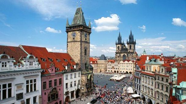 Эта площадь известна ещё с 12 века, когда она была обыкновенным небольшим рынком. С тех пор она несколько раз меняла своё название. Ныне все знают её как Староместкую площадь. Примечательно, что на этой площади находятся Пражские куранты - это огромные башенные часы, сохранившиеся до наших времён ещё со средневековья. Некоторые детали этих часов были изготовлены в далёком 1410 году. Каждый час, под бой курантов часы разыгрывают небольшое кукольное представление.