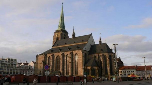 Одна из святынь собора и объект паломничества — статуя Пльзенской Девы Марии. Скульптура, расположенная в углублении в главном алтаре, вытесана из песчанистого мергеля, а ее высота составляет 134 сантиметра.