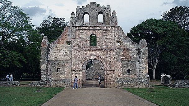 Как на ладони оказываются величественные горы, подножия которых утопают в пестрых языках пламени цветущих деревьев: красные, ярко-оранжевые и желтые краски сливаются с бурными потоками реки. Вдали можно увидеть руины древней церкви, построенной еще в шестнадцатом столетии.