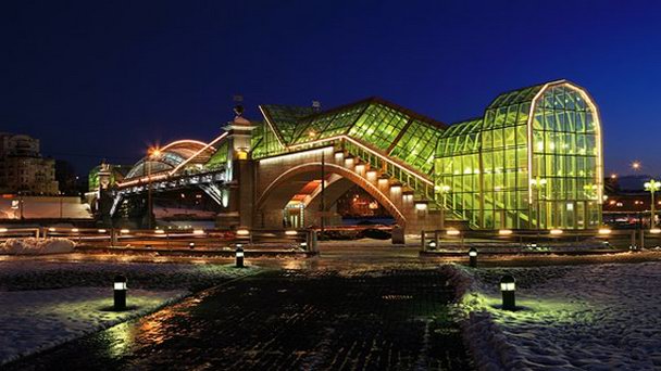 Пешеходный мост Богдана Хмельницкого соединяет Бережковскую и Ростовскую набережные в Москве.