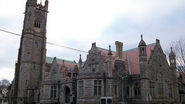 Церковь построена в готическом стиле, высота колокольни достигает 56 метров. Церковь построена из местного гранита, который добывается недалеко от города в Форт Феникс, и известняка, привезенного из штата Индиана. Искусные резчики украсили фасад здания и внутренние интерьеры резьбой по камню. Витражные окна, сделанные по эскизам художника Роберта Рейда из Нью-Йорка, придают особое великолепие храму. В 1996 году здание церкви было включено в Национальный реестр исторических мест США.