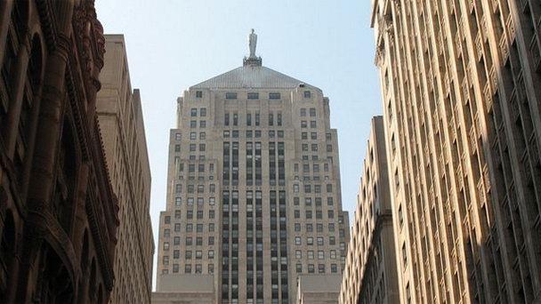 Первое здание торговой палаты появилось на этом месте еще в 1882 году. Кстати, это было единственно на тот момент здание в Чикаго, полностью электрифицированное. Говорят, выглядело оно тяжеловато и старомодно, особенно на фоне растущих рядом высоток. В 1929 году старое здание снесли, а в 1930 состоялись первые торги в новом здании Торговой палаты Чикаго. С тех пор они практически никогда не прекращались. На 12-ом этаже небоскреба расположен тот самый знаменитый торговый зал, где раньше заключались миллионные сделки по купле-продаже пшеницы, овса, соевого масла, бобов, а теперь к ним добавились золото, серебро и ценные бумаги.