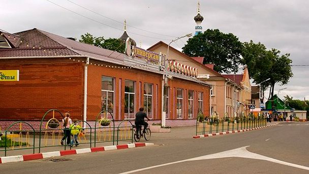 За площадью открывается прекрасный вид. Работают сувенирные лавки, в которых можно приобрести на память предметы белорусской старины.