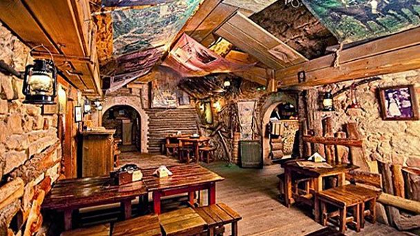 Чтобы попасть в ресторан, необходимо назвать пароль стоящему у входа «вооруженному солдату», который предлагает каждому гостю рюмку медовухи «для проверки». На стенах заведения висят старые фотографии, оружие, разнообразные национальные артефакты. Посетители даже могут пострелять в потолок холостыми патронами из предоставленных автоматов. Приветливые официанты одеты в армейскую форму. В зале звучит соответствующая музыка. Здесь всегда весело и многолюдно.