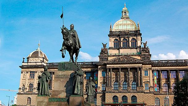 Вацлавская площадь или как называют ее сами горожане - Вацавак одна из самых больших площадей в Европе. На этом месте произошли множество исторических событий. Сегодня в центре делового и торгового центра Праги находится величественная статуя князя Вацлава, святого небесного покровителя страны. Первую статую здесь установили еще в начале XVII века и она разительно отличается от сегодняшней. Первый монумент отличается поэтичной и церковной красотой, в которой руководители страны усмотрели несколько больше наивности, чем полагается для центральной статуи города. Поэтому первого Вацлава перенесли в Вышеград, а на его месте по проекту Йосефа Вацлава Мысльбека установили скульптуру более соответствующую национальному характеру чехов. Современную скульптуру окружают еще четверо святых - святая Людмила, святая Агнесса Чешская, святой Прокопий и Адальберт Пражский. Сам же святой Вацлав восседает на коне, покровительно вознеся над собой знамя.
