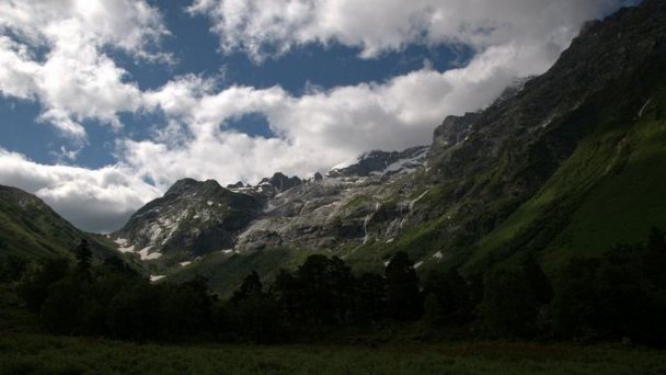 Это место называется Софийским приютом. Когда-то здесь находились домики, используемые организованными туристами для проживания. В девяностые годы их разобрали на дрова. В мае обычно здесь начинается снег.