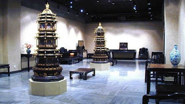 Выставочный зал музея занимает площадь 10.000 квадратных метров. Его экспозицию составляют модели известных древних храмов, башен, пагод и т. п., скульптуры, барельефы, мебель династий Мин и Цин и другие изделия из сандалового дерева.