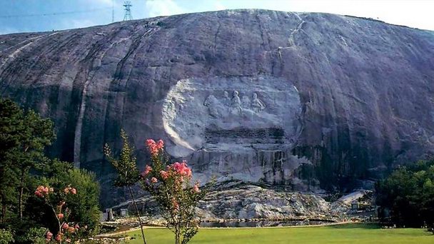 Высота этой горы достигает 250 метров над уровнем равнины и 514 метров над уровнем моря, а ее окружность превышает 8 километров. Но не одними лишь размерами славен этот гранитный монолит. На его северной стене можно увидеть крупнейший в мире барельеф изящной работы, на котором запечатлены лидеры Американской Конфедерации - президент Джефферсон Дэвис и его бессменные соратники - генералы Роберт Ли и Томас Джексон, горделиво восседающие на своих лошадях. Размеры фигур составляют 28 метров в высоту и 59 - в длину, в то время как общая площадь этого величественного барельефа превышает 10 000 квадратных метров и находится на высоте 120 метров.