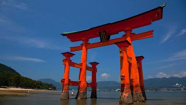 На острове воздвигнут Ицукусима - один из древнейших синтоистских храмов. Ярко-красные ворота храма – тории - вынесены далеко в море перед входом в святилище. Существует поверье: человек, которому удастся пройти под этими воротами, обретёт счастье и благополучие. Как, впрочем, и исполнятся все его желания. Кстати, пройти под воротами, можно только во время отлива. Ловите момент и готовьте желания.