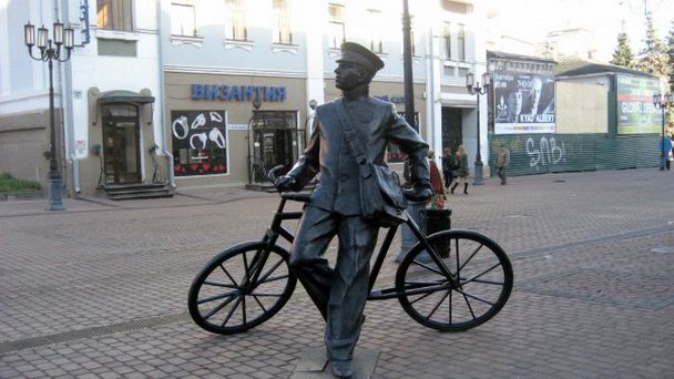 Скульптура романтичного почтальона находится в исторической части Нижнего Новгорода на улице Большая Покровская, неподалёку от здания главного почтамта. Бронзовая скульптура изображает молодого почтальона, который оперся на велосипед и задумчиво смотрит вдаль.