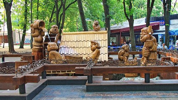 Каких только удивительных деревянных скульптур здесь не обнаружишь: «Козьма Прутков: зри в корень», гном-дударь, ведьма и совенок, русалка и многие другие. Всего скульптур на сегодня 35, некоторые старые были убраны, создаются новые.