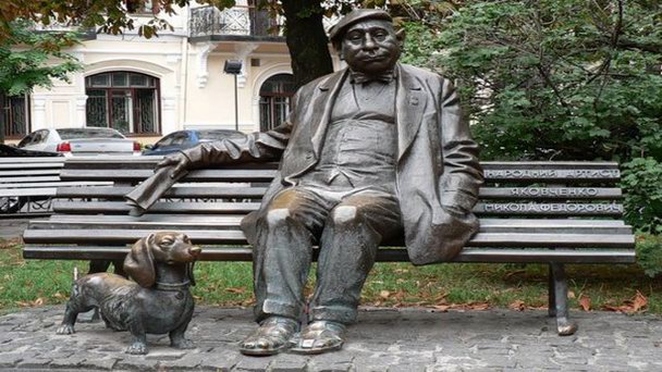 Этот памятник был установлен в Киеве в честь известного советского комедийного актера кино и театра Николая Яковченко, который известен как Прокоп Серко («За двумя зайцами»), Спирид («Вий»), Пацюк («Вечера на хуторе близ Диканьки»).