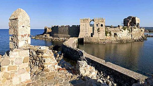 Замок Метони являлся старинной османско-венецианской крепостью. Замок достаточно большой и занимает весь район юго-западного побережья полуострова Пелопоннес. Северная часть замка, которая обращена к суше, укреплена 156 метровым скалистым холмом. Глубокий ров, отделяющий замок от суши, служил защитой от иностранных захватчиков. Венецианцы достроили больше зубьев у вершин стен, когда захватили замок.