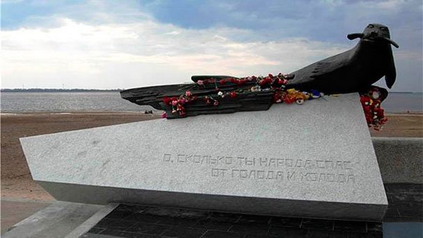 После блокадного Ленинграда Архангельск был вторым городом по уровню смертности от голода. Не смоторя на то, что через его порт проходили тонны продовольствия для охваченной войной страны, город голодал. За первые два года после объявления войны в Архангельске умерло 38 тысяч жителей. На празднования 65-й годовщины Великой Победы в Архангельске появился необычный памятник тому, кто спас город в это непростое время.