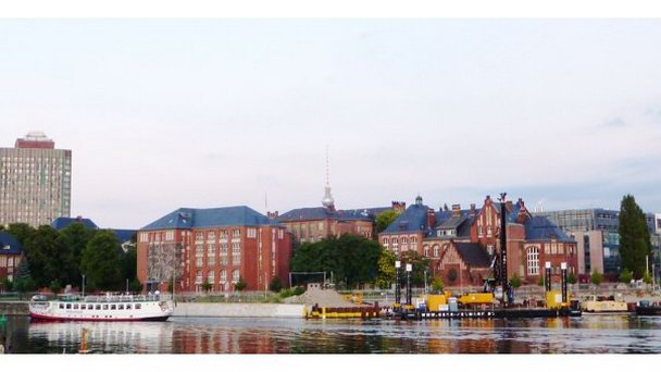 Набережная озера Альстер. Это излюбленное место отдыха жителей и гостей Гамбурга. На противоположной стороне сохранились средневековые дома в стиле кирпичной готики. Кирпич красного цвета, оконные рамы и декоративные элементы фасада - белые. Это традиционные цвета Ганзейского торгового союза, в котором Гамбург играл ведущую роль в течение пяти веков.