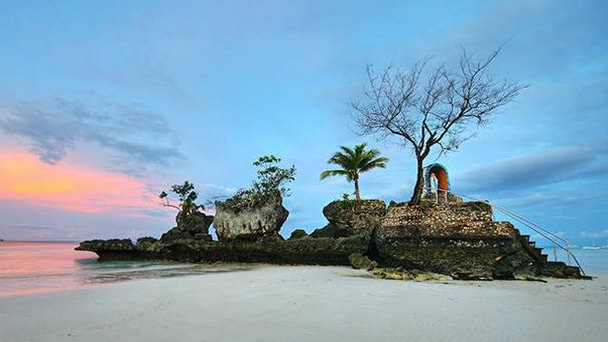 Камень Вилли или Виллис Рок – самая узнаваемая достопримечательность острова Боракай. Он встречается на множестве открыток как своеобразный причудливый символ отдыха на этом туристическом острове. Камень Вилли – вулканическое образование странной формы, находящееся в непосредственной близости от знаменитого Белого пляжа Боракая. Со стороны пляжа на остров ведет изящная лестница, которая заканчивается у ног статуи Девы Марии. Это крохотная часовня на камне посреди волн.