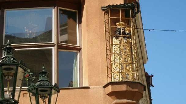Почти четыре столетия черная Мадонна оберегала дом на улице Целетна. Когда в 1911 году его сносили, Мадонну не решились разлучать с этим местом и бережно переселили на фасад уже нового здания, спрятав ее за золотой решеткой. А новый дом так стали называть – «У черной Мадонны».