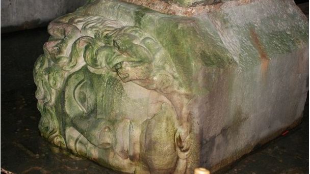 Еще одной из интересных особенностей этого места являются головы Медузы Горгоны, которые изготовлены из камня. До сих пор неизвестно, каким образом и откуда они попали в водохранилище. Немного жуткое зрелище.