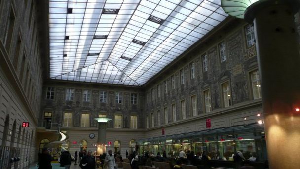Находится правее Вацлавской площади,если стоять спиной к Святому Вацлаву на коне) Там можно отправить открытку,что я и делаю из разных стран) Само здание почтамта внутри впечатляет-стеклянная крыша и толстенные стены...